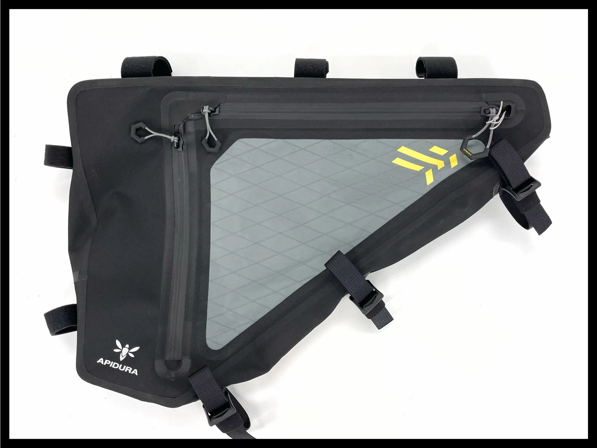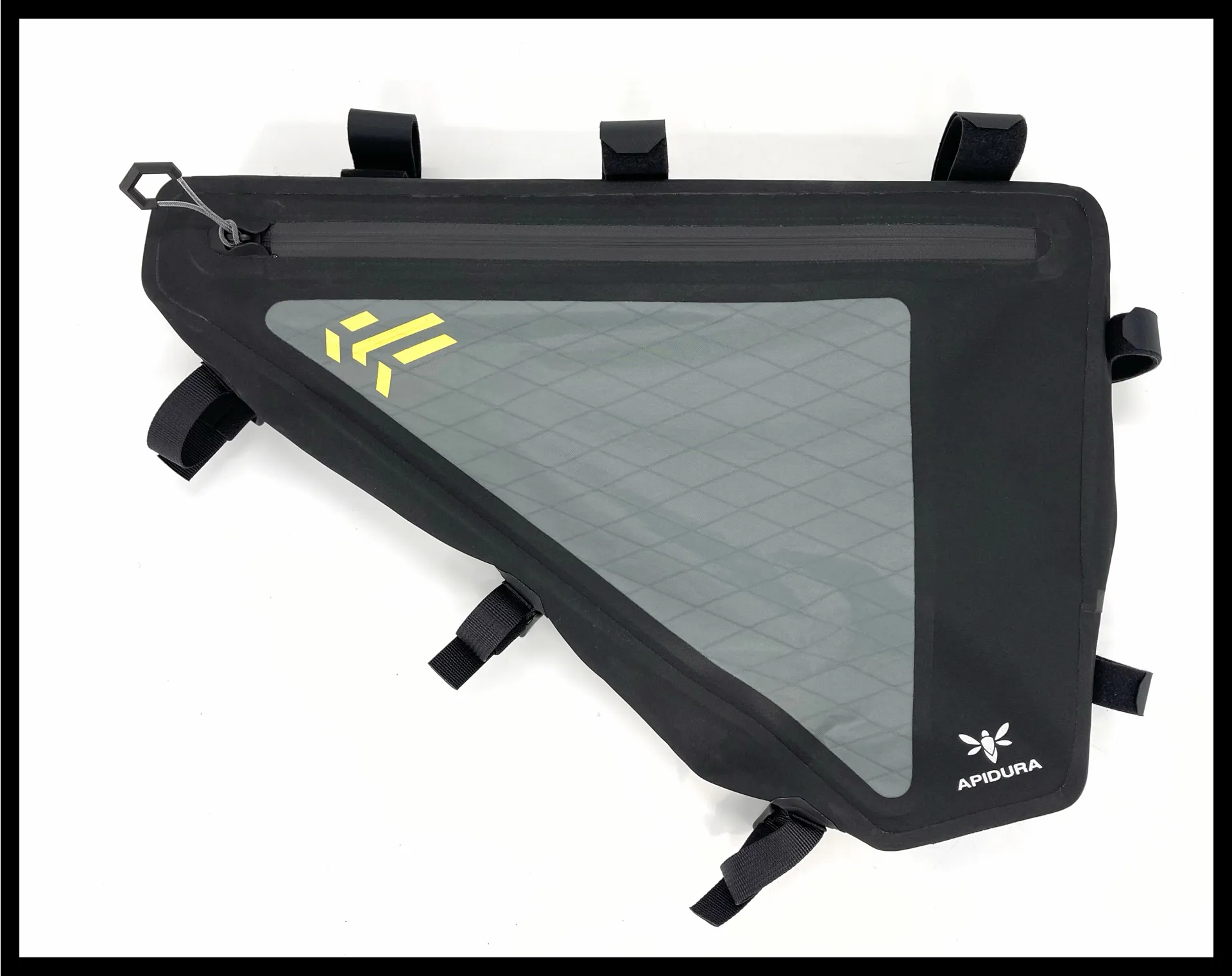 Offering a weatherproof, durable construction, Apidura’s Backcountry Full Frame Pack 4L is a great way to carry heavier items on bikepacking adventures as the central position keeps the centre of gravity low for better handling. It has a six litre cargo capacity with zips on both sides for easy access and internal straps to stabilise the load whilst an internal pocket keeps smaller or valuable items separate. Eight Hypalon reinforced Velcro straps ensure that the bag remains stable on the bike across bumpy trails and the waterproof fabric and welded seams protect the contents from any rain or mud. The bag can be used to carry a water bladder thanks to the hose egress point at the front and at night the reflective details increase visibility to any traffic.
