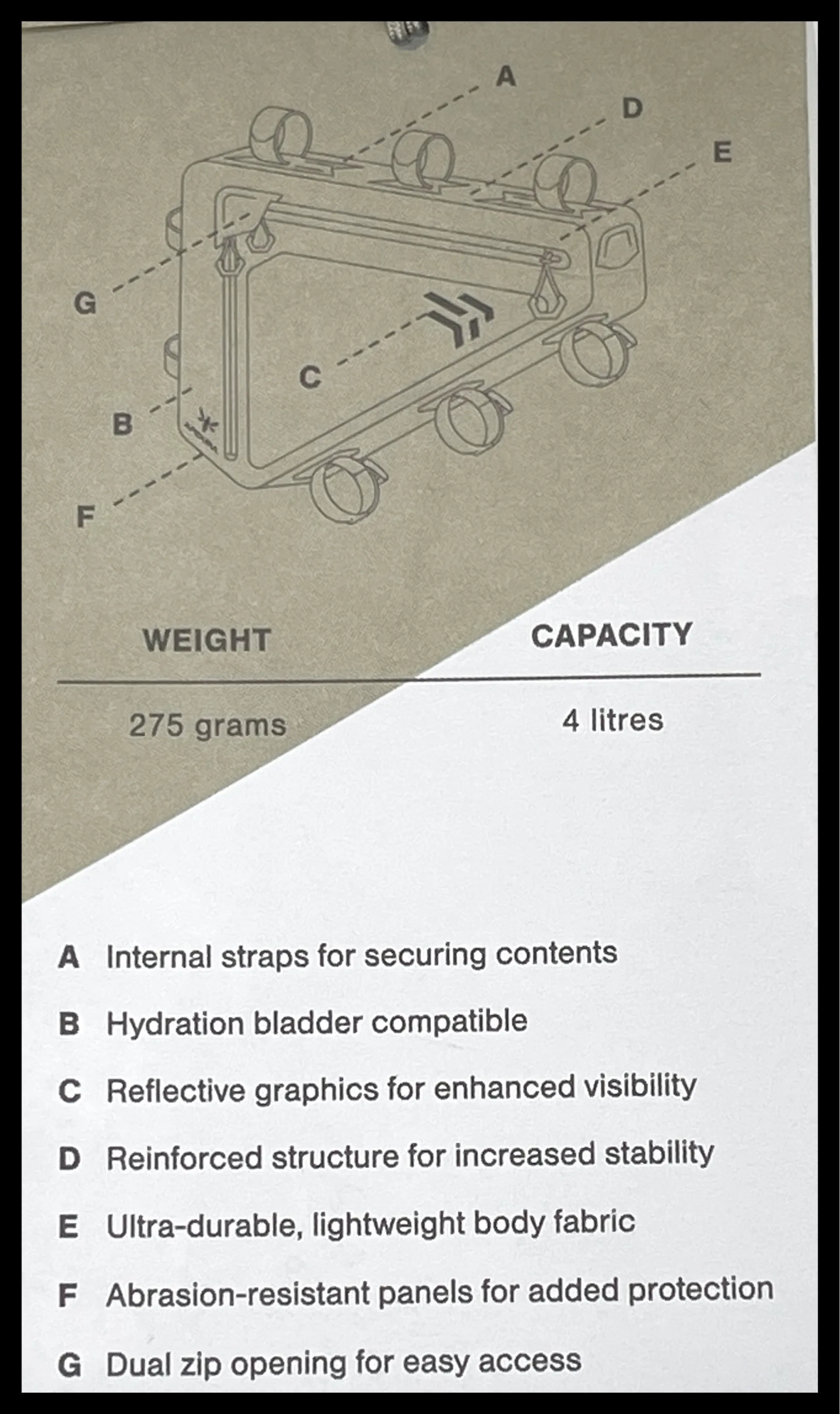 • Hydration bladder compatible