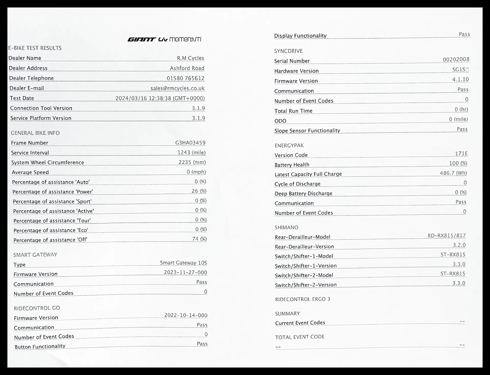 Should you have any questions please call us on 01580765612. Due to high call volumes, there may be a delay in answering. Alternatively, Please send us a email to customercare@rmcycles.co.uk