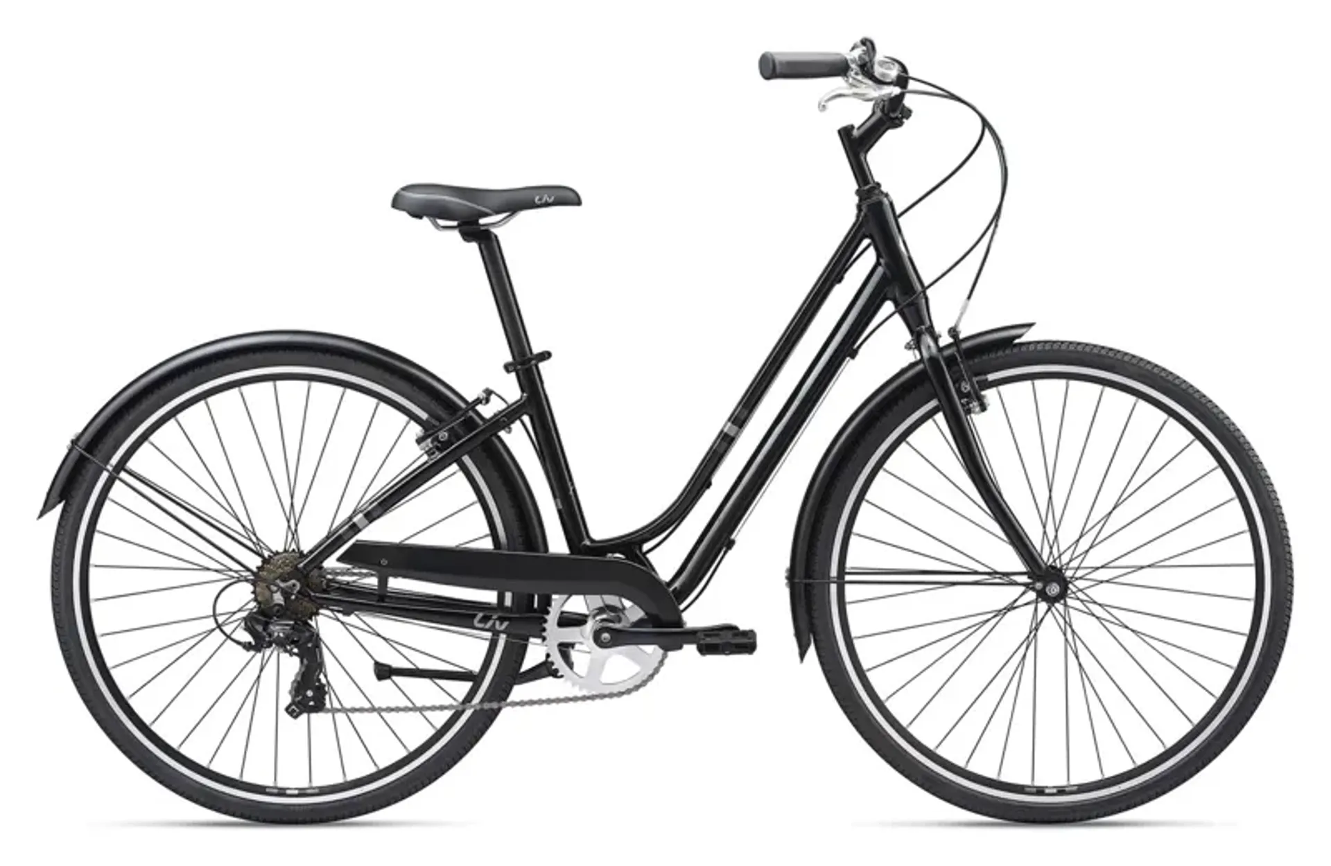 The step-through design makes it quick and easy to hop on and off the bike once youre at your destination. Select models offer integrated fenders and a full chainguard to protect you from dirt or road debris in any kind of weather, plus baskets and racks to carry your essentials. With livs 3f design philosophy to best harness a womans strength and riding style, flourish is a confidence-inspiring city companion.