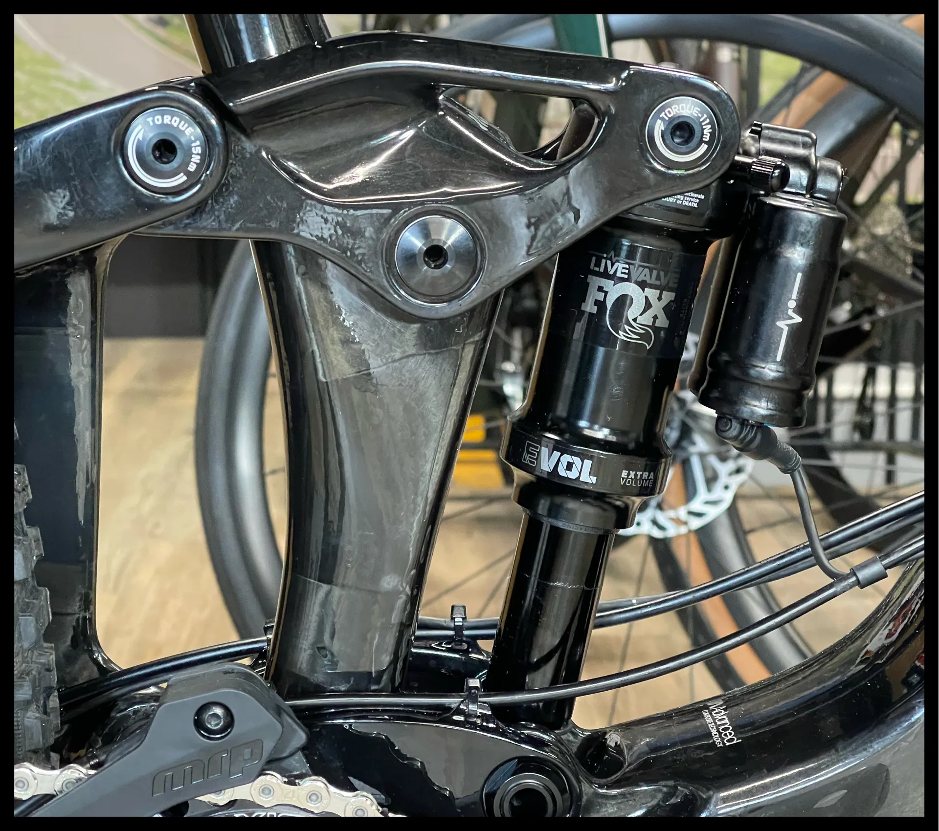 Advanced-Grade Composite front and rear triangles, 120mm Maestro suspension, flip chip, 12x148mm thru-axle