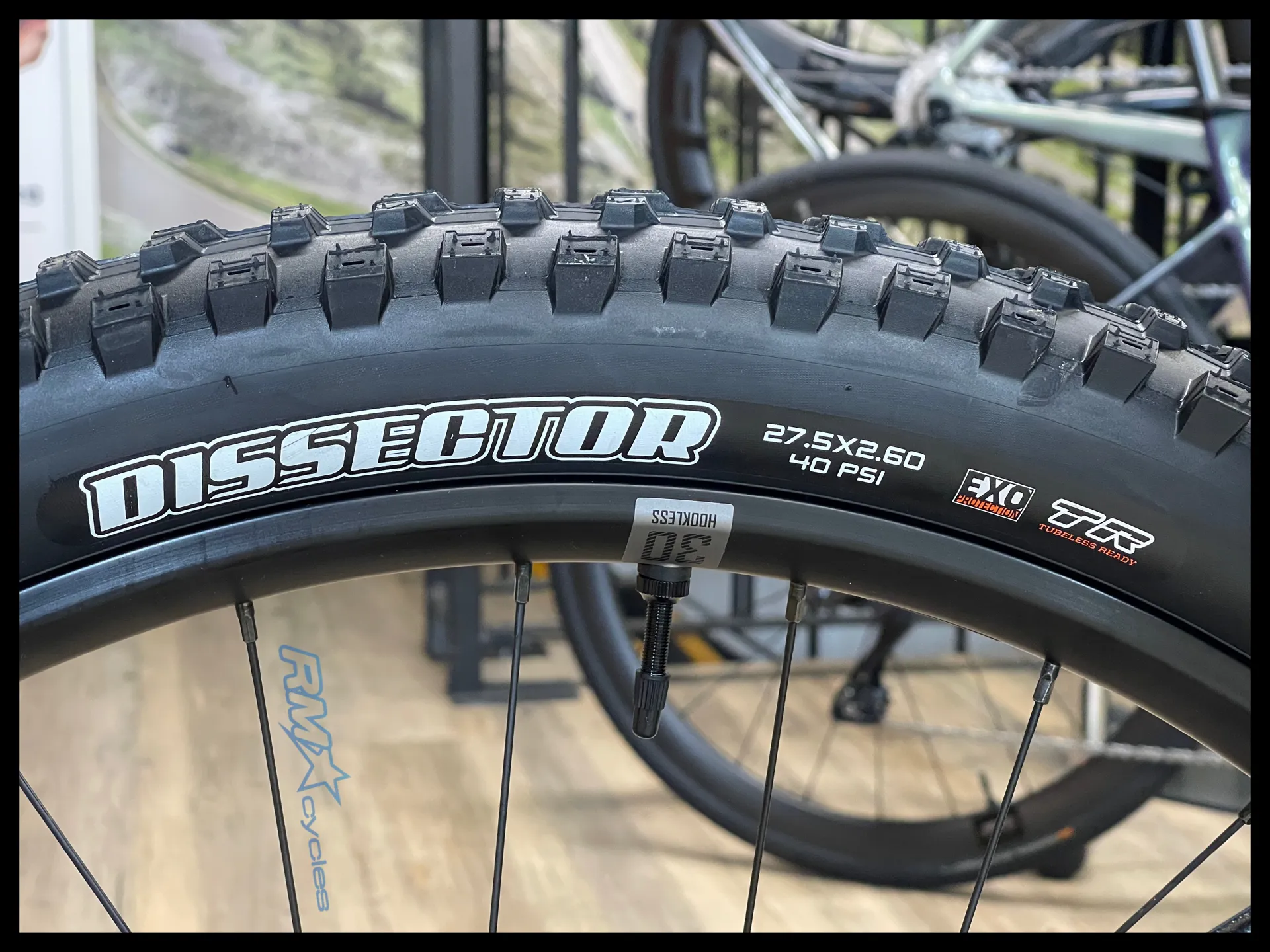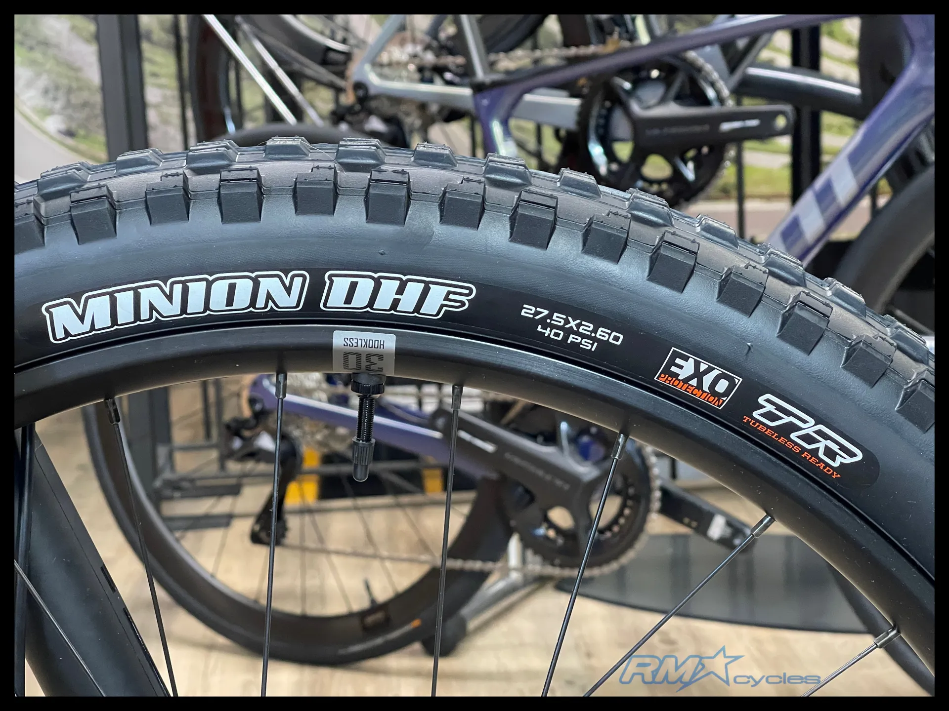 27.5": [F] Maxxis Minion DHF 27.5x2.6, EXO, TR, tubeless [R] Maxxis Dissector 27.5x2.6, EXO, TR, tubeless 29": [F] Maxxis Minion DHF 29x2.5 WT, EXO, TR, tubeless [R] Maxxis Dissector 29x2.4 WT, EXO, TR, tubeless
