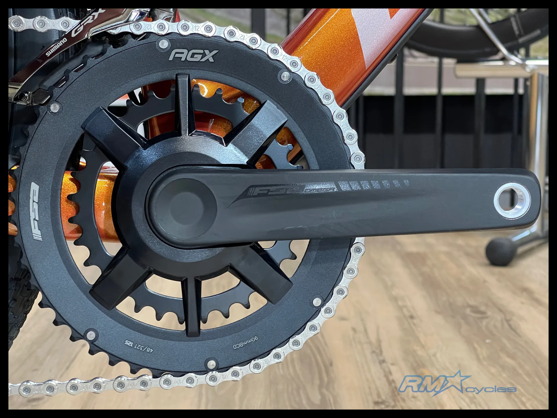 SRAM Wide 2x 43-30, 1x 46T. Shimano GRX 2x 48-31, 1x 42T
