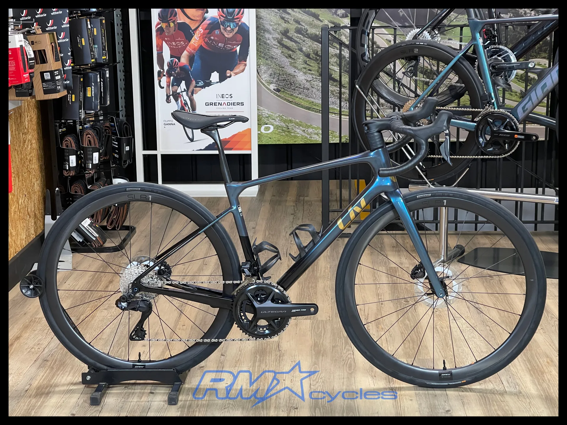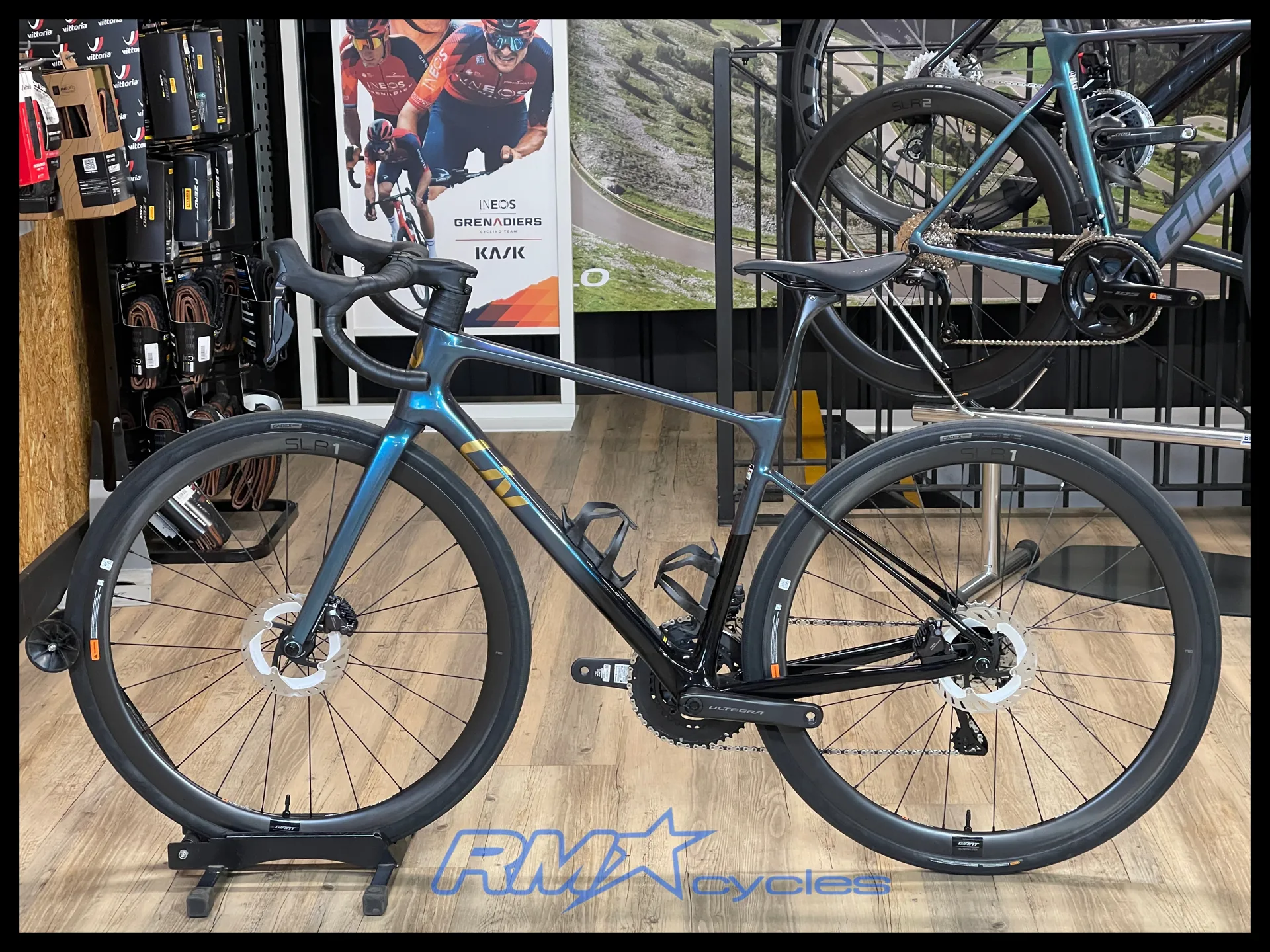 Shimano Ultegra hydraulic, Shimano RTCL800 rotors [F]160mm, [R]160mm