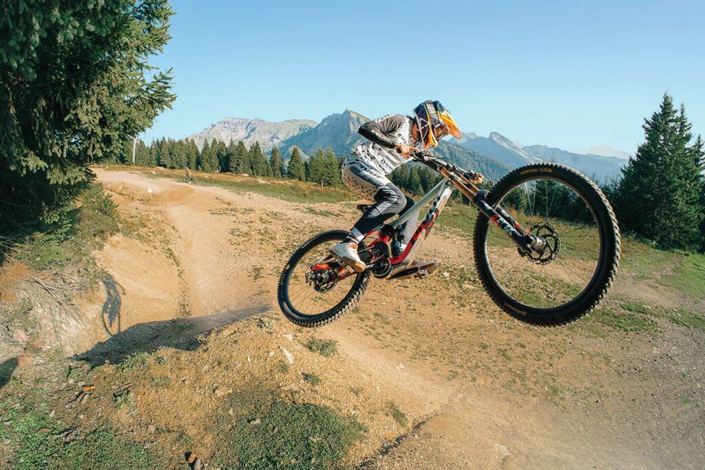 Downhill race bike tested on steep, fast, and blown-out tracks