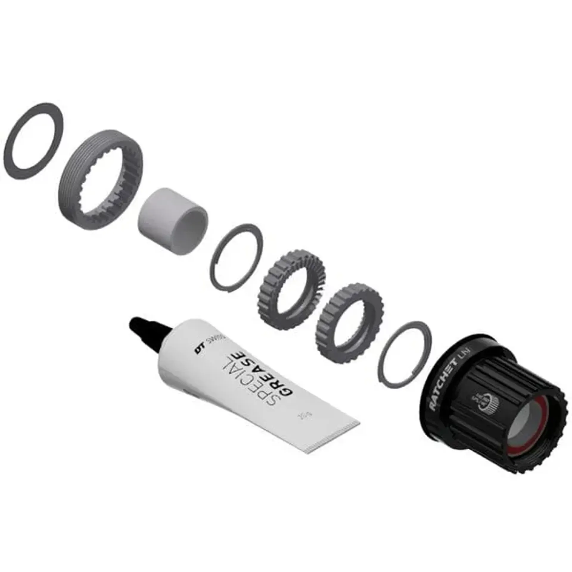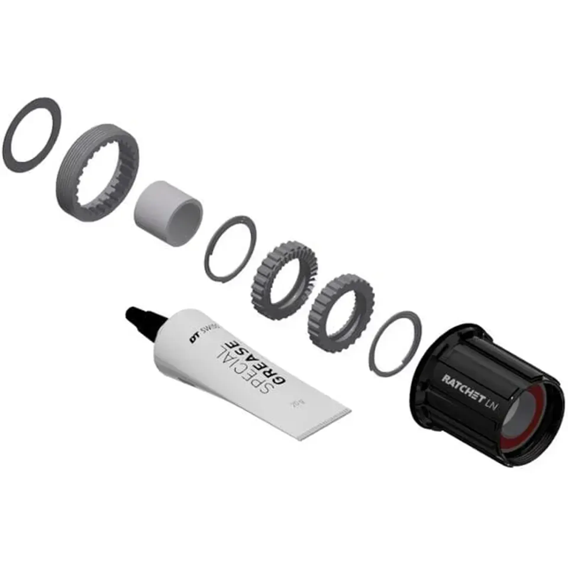 The Ratchet LN upgrade kit enables the conversion of DT Swiss 3-pawl hubs to the renowned DT Ratchet freehub system.