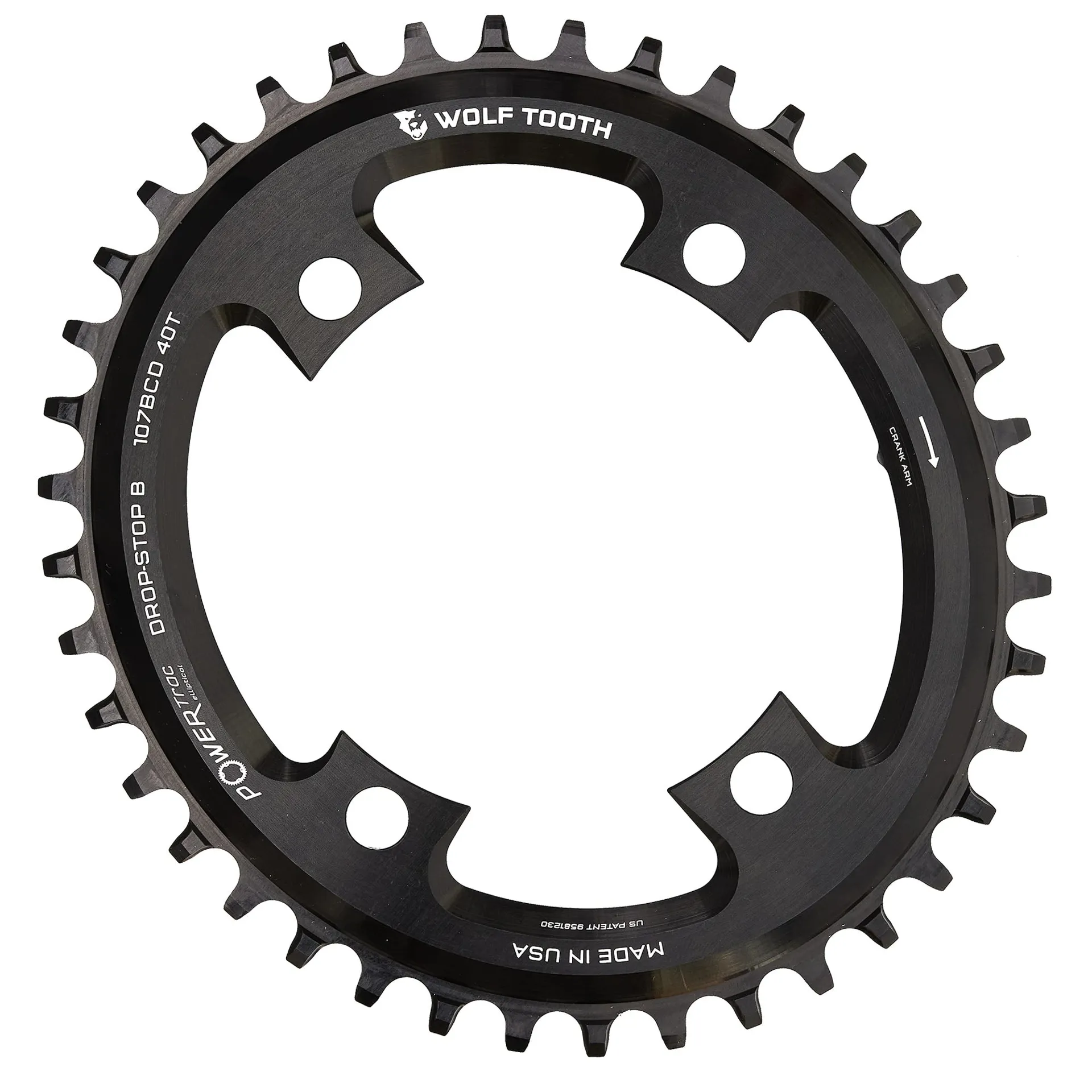 This chainring uses the patented Wolf Tooth Drop-Stop B Wide/Narrow tooth profile that is optimized for drop bar bikes.