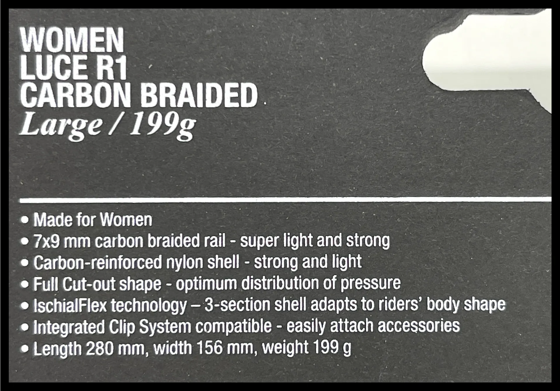 Question(s) asked regarding Fizik Luce R1 Black Large 156mm Womens Saddle carbon braided 7x9mm