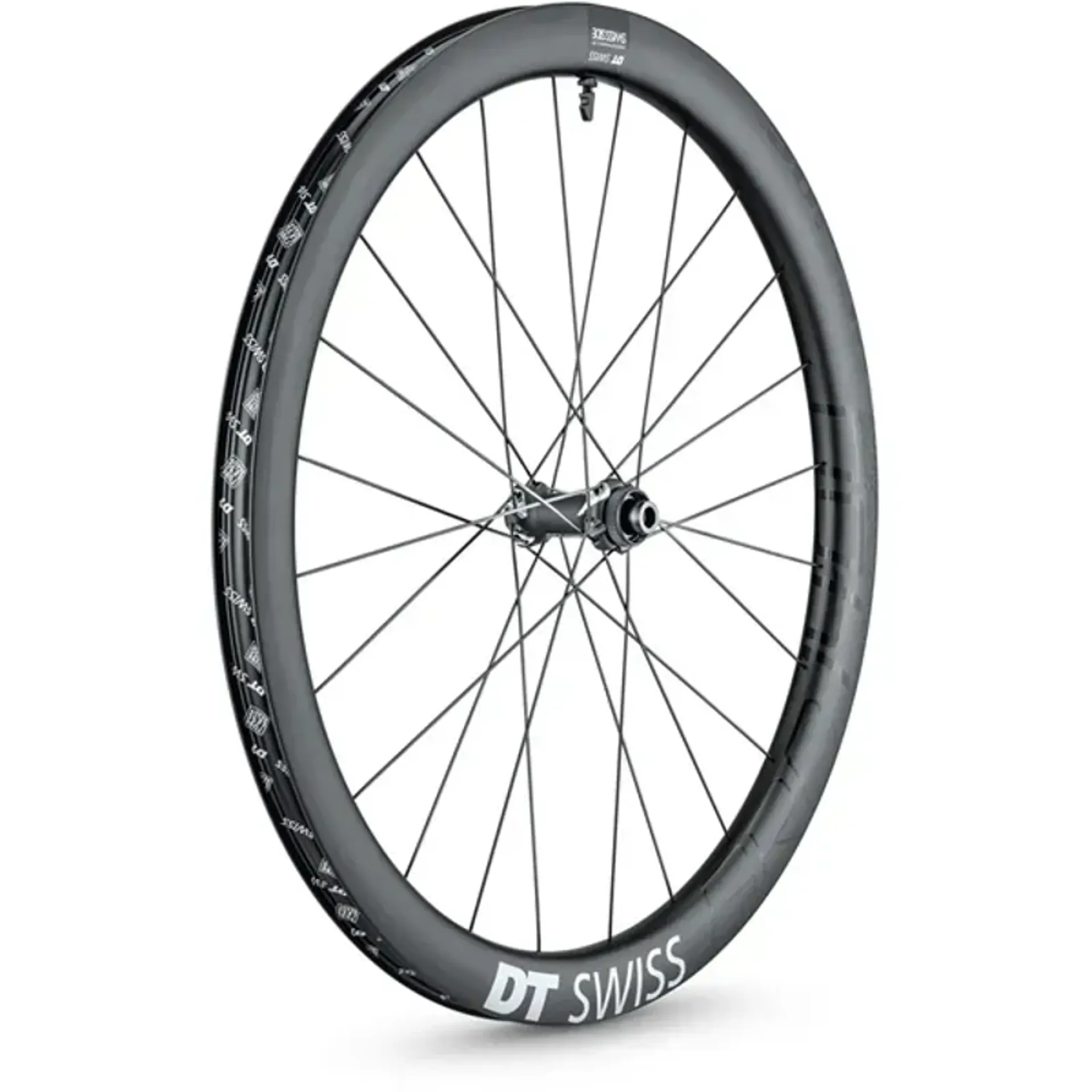 • The rims are manufactured using a method developed by DT to ensure continuous carbon fibres are aligned with the forces passing through the wheel, increasing strength and stiffness in use without adding weight