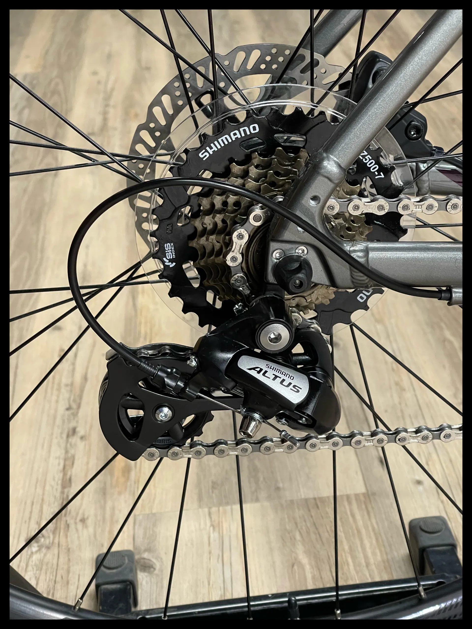 this is a former shop demo/display bike. It has been ridden less than 3 miles and is in excellent condition therefore ( see pictures). The custom buildfeatures carbon forks,14 speed shimano gear system andtektro disc brakes.