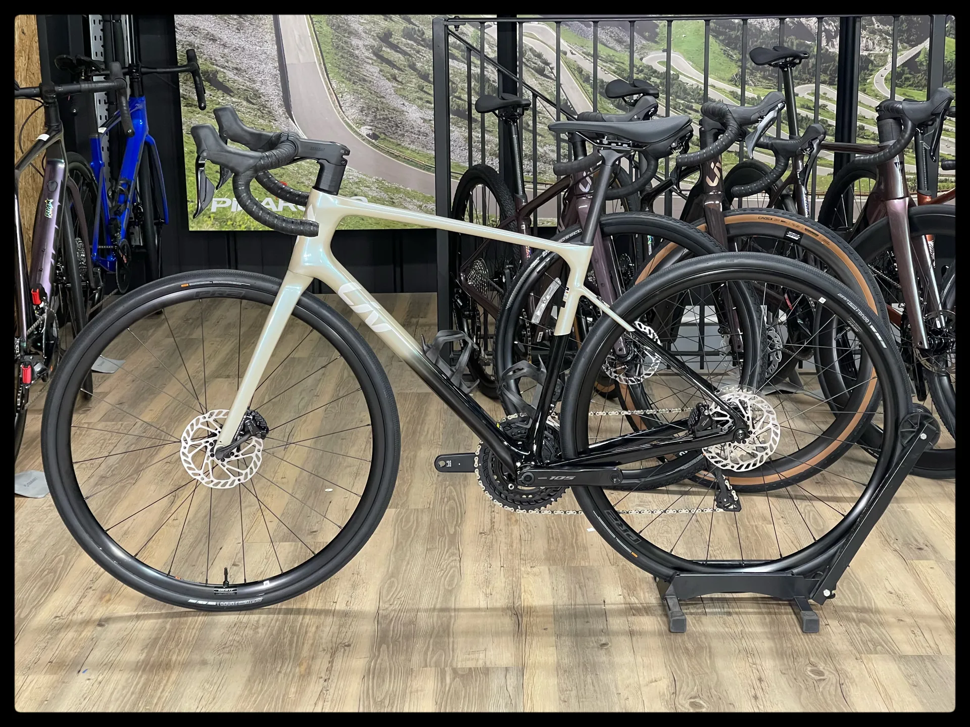 Shimano 105 Di2 hydraulic, Giant rotors [F]160mm, [R]160mm
