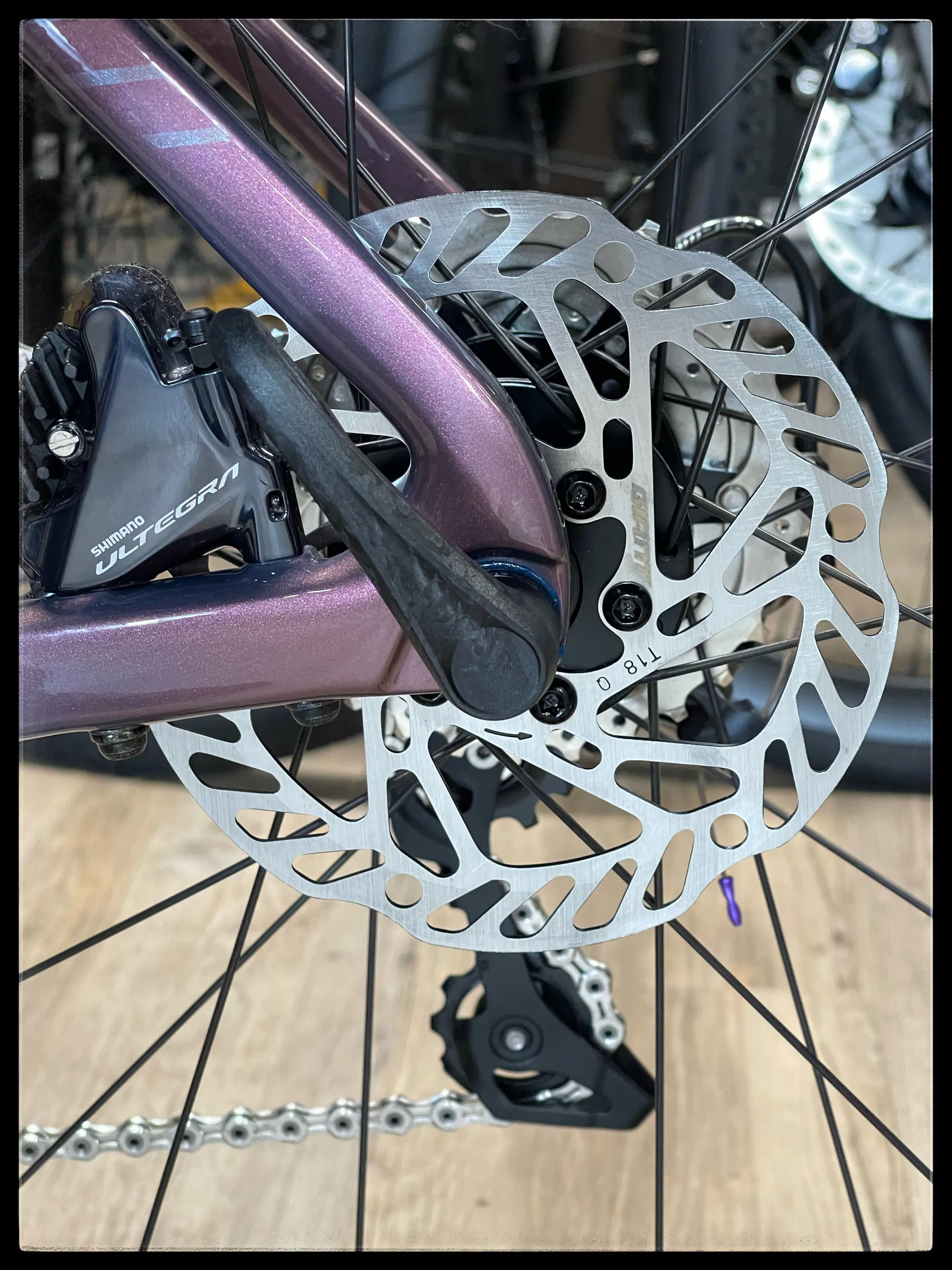 The lateral stiffness in the fork and disc brakes offer the corner-bombing, gap-shooting control you need on race day.
