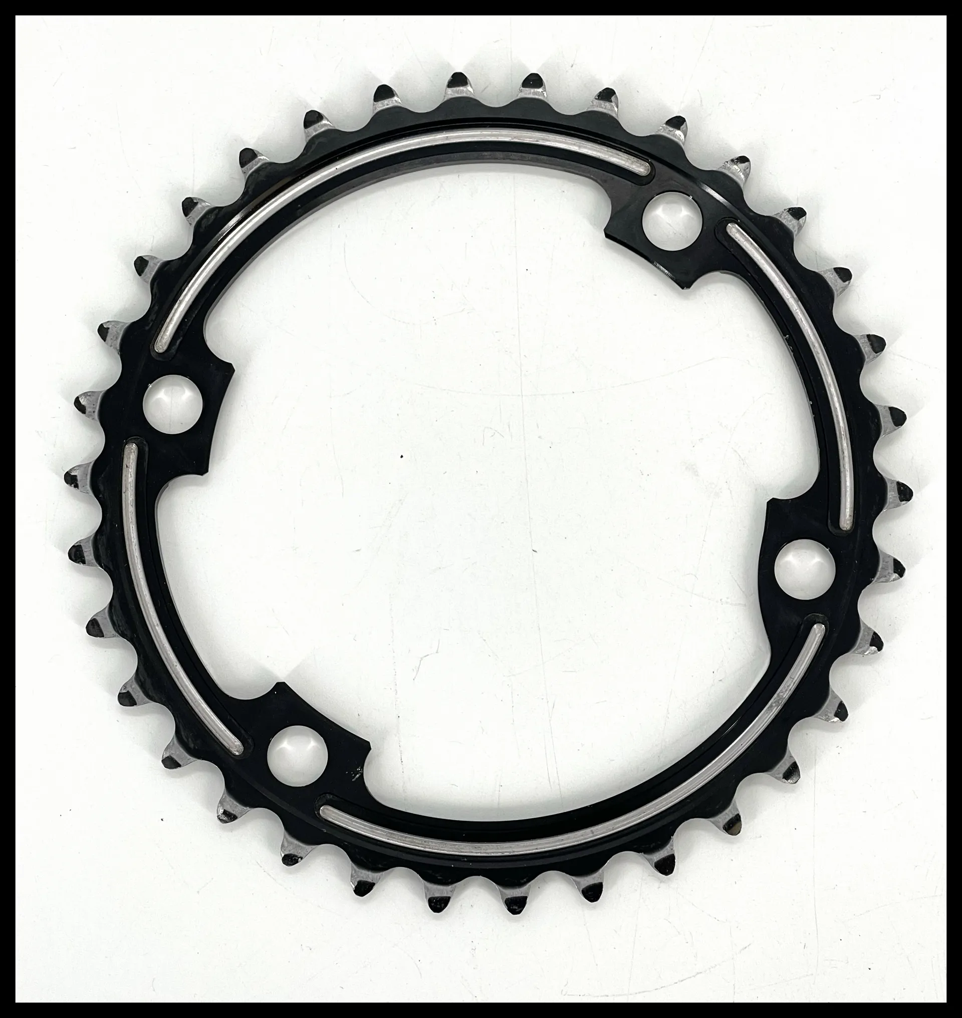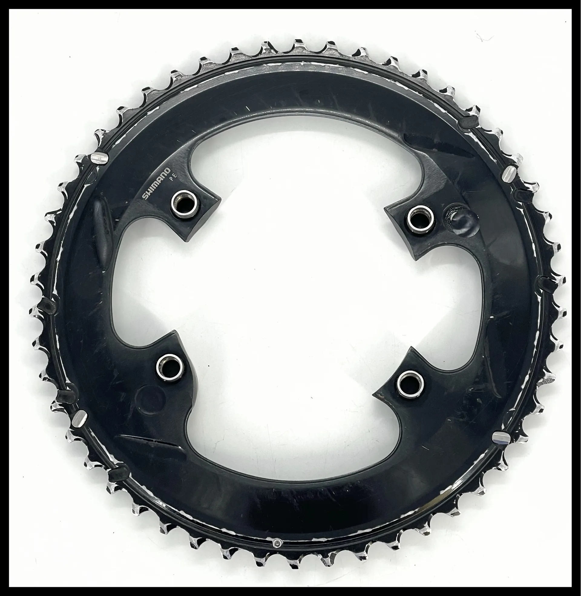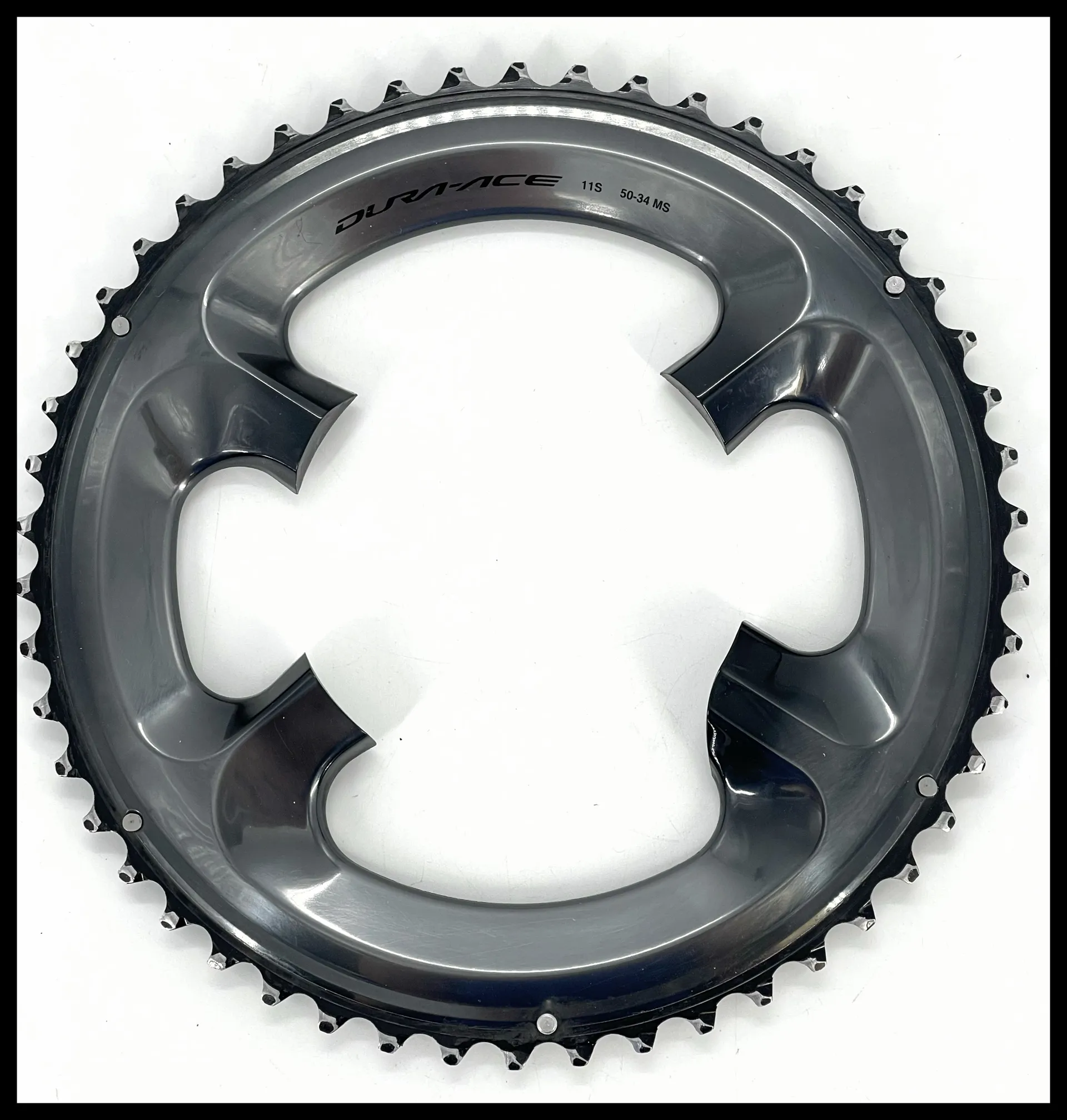 This is a lightly used item as you can see from the pictures, bolts are included.For top strength, solid power and a smooth gear change, you can't do better than the Dura-AceFC-R9100 50-34 Chainring